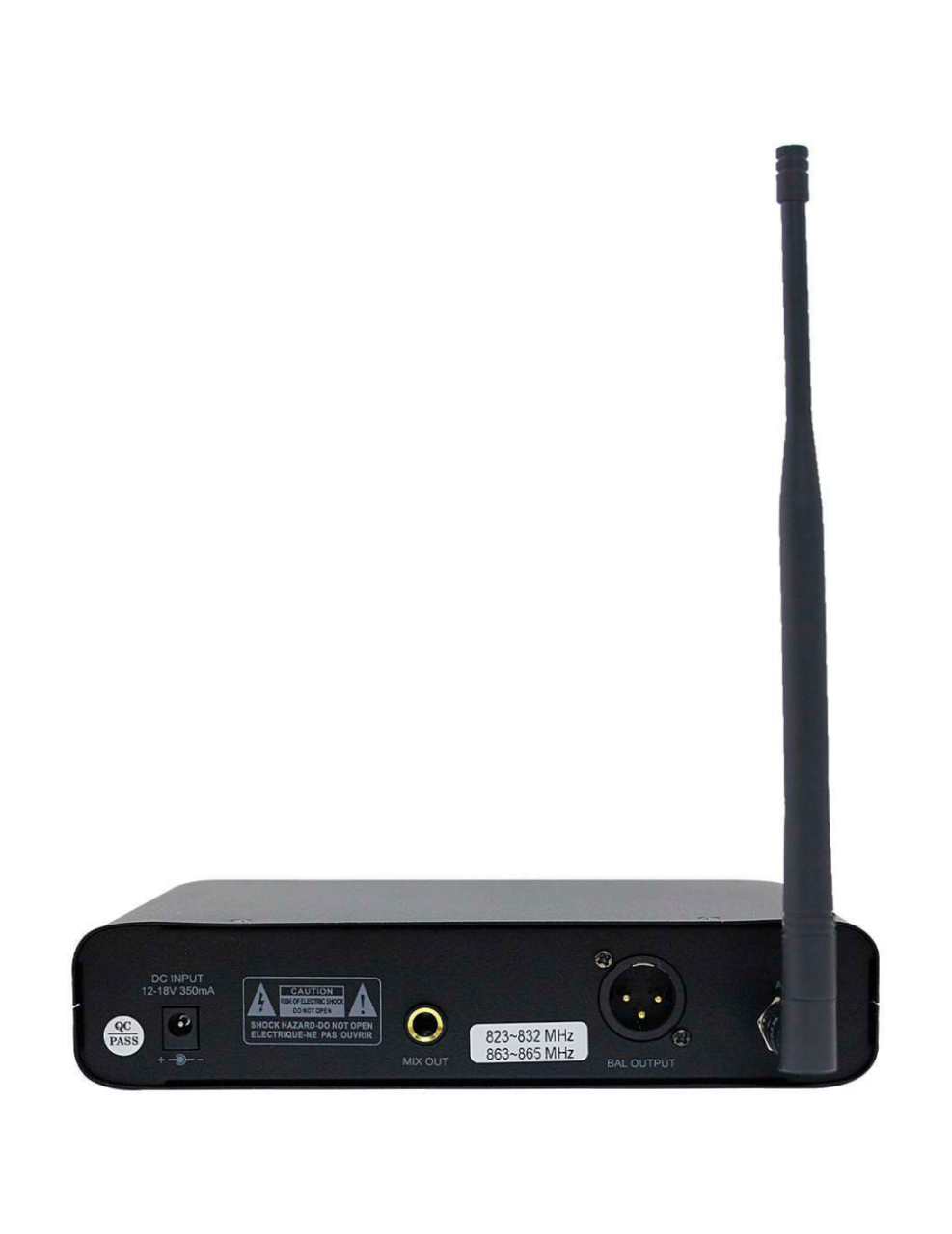 – Alcance de trabalho: 60 m em distância linear. Observe: o alcance real depende da absorção, reflexão e interferência do sinal de RF e do ambiente em que o microfone é usado