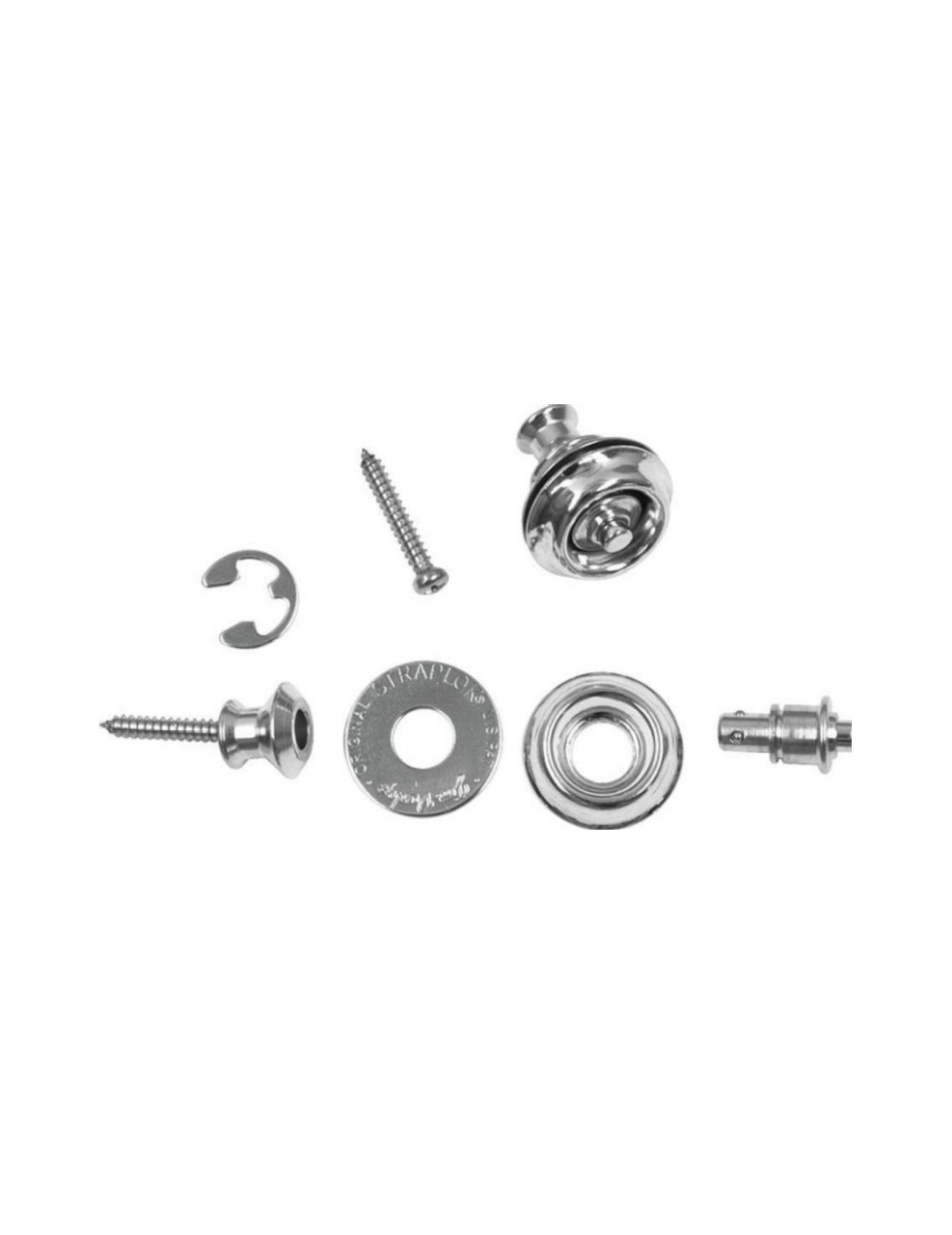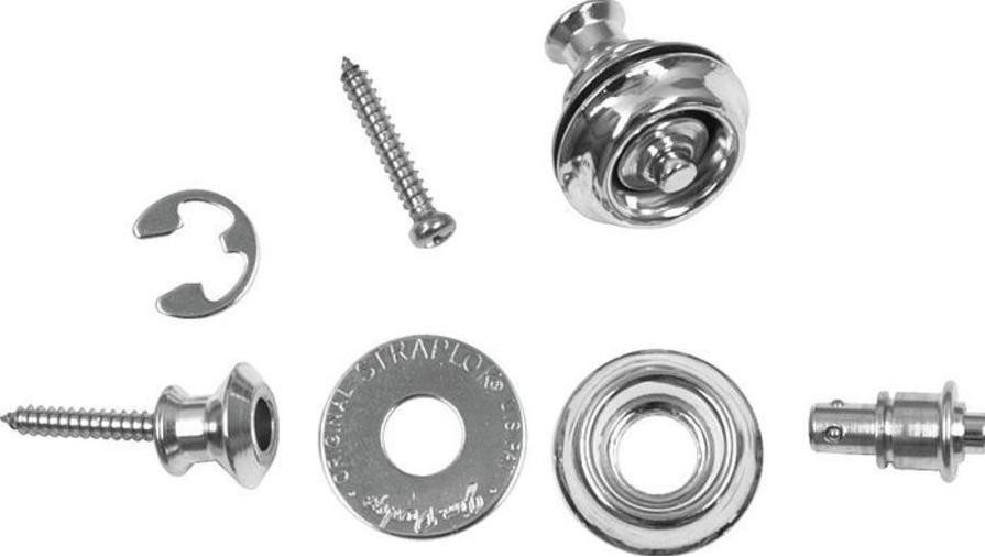 Set (2 units for instrument and strap) adapts to instrument by replacing existing strap pins/screws with special StrapLok® System buttons/screws. Two strap attachments are included. Available in four finishes and four button styles.