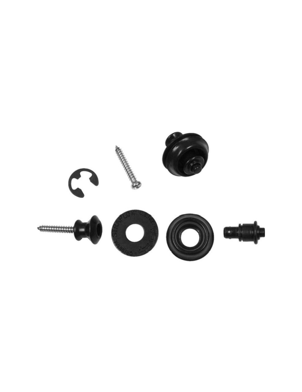 Set (2 units for instrument and strap) adapts to instrument by replacing existing strap pins/screws with special StrapLok® System buttons/screws. Two strap attachments are included. Available in four finishes and four button styles.