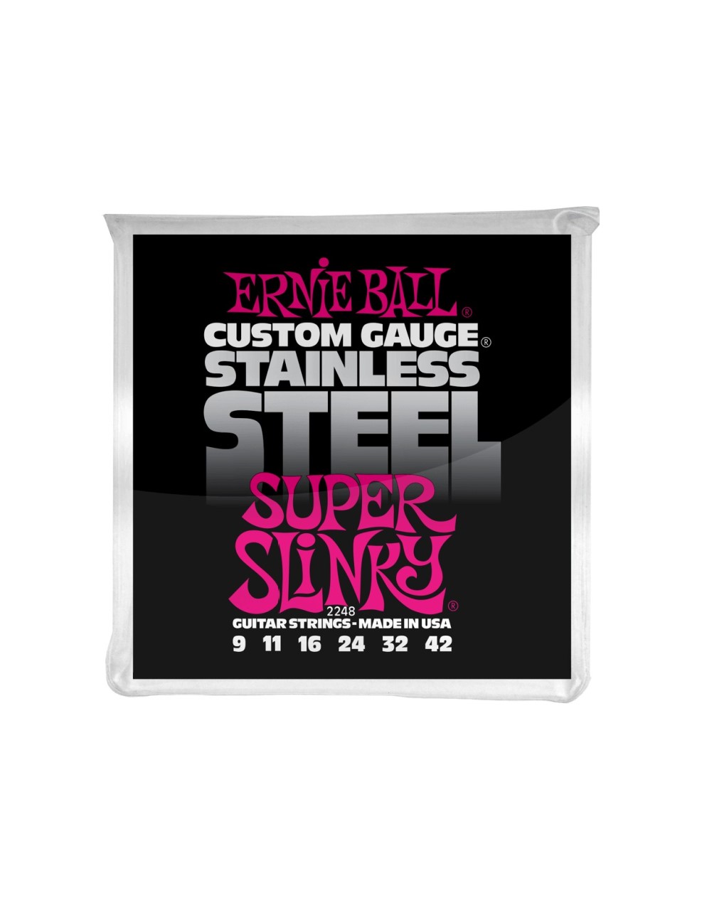 Ernie Ball EB2248 Stainless Super Electric Guitar Strings Set – stainless steel, roundwound, high power, brilliant sound. Gauges: 009-011-016-024w-032-042.