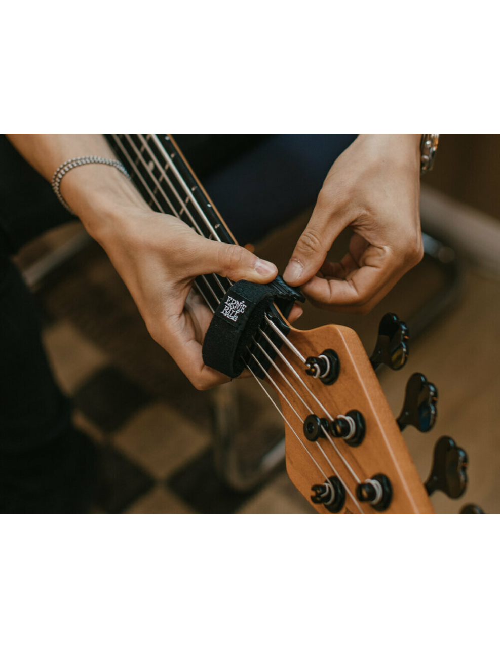 - Cinta de amortecimento ajustável: Corta ruídos indesejados de cordas.