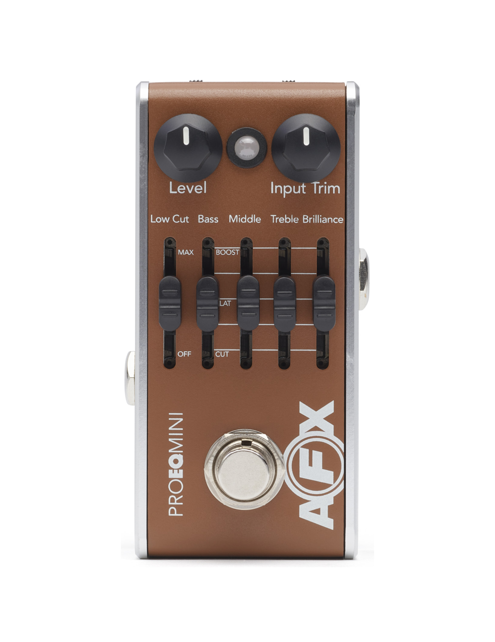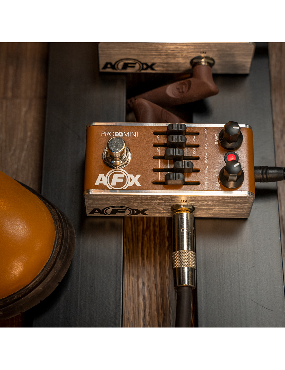 PRO-AFX-EQ2, um pré-amplificador e equalizador compacto desenvolvido pela Fishman, referência mundial em tecnologia para instrumentos acústicos. Inspirado na renomada série Platinum, este pedal oferece qualidade sonora excepcional, permitindo que músicos ajustem seu timbre com precisão.