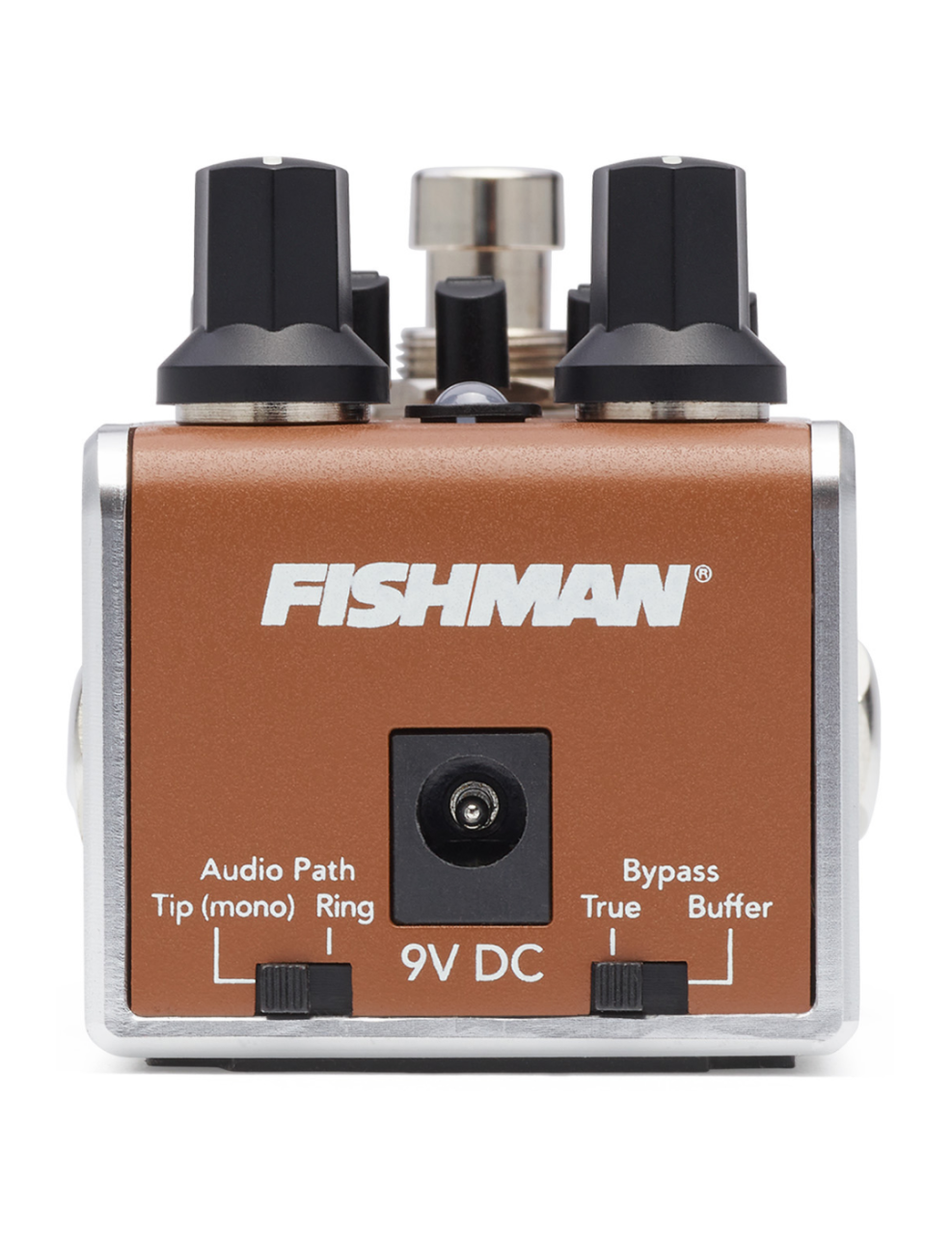 - Alimentação externa de 9V – Requer adaptador Fishman 910-R (120V) ou 910-U (230V) (vendido separadamente)