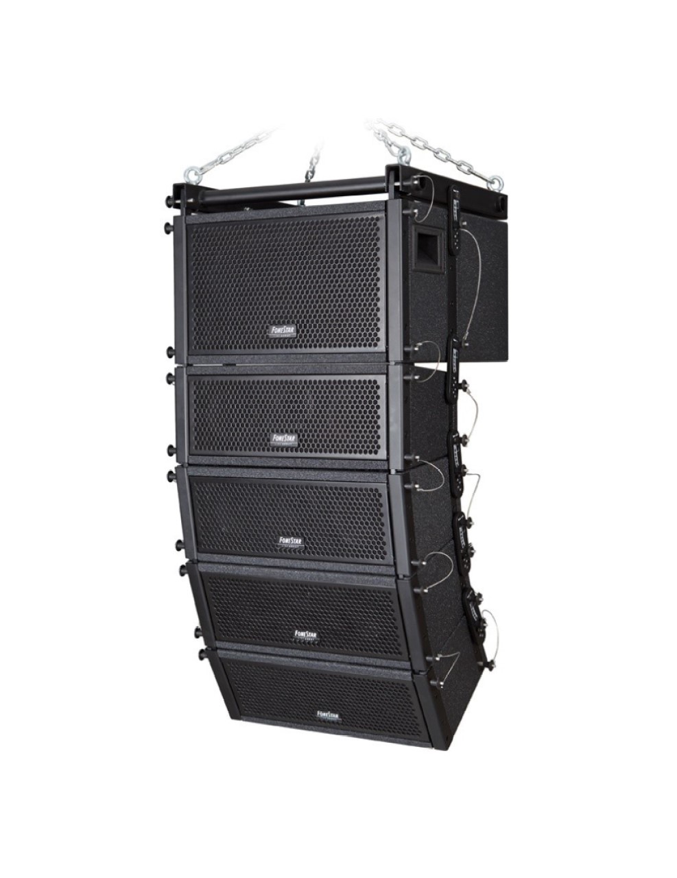 Subwoofer e 4 colunas acústicas de médio-agudos com inclinaçãoo ajustável de 0 a 10º em passos de 2º.