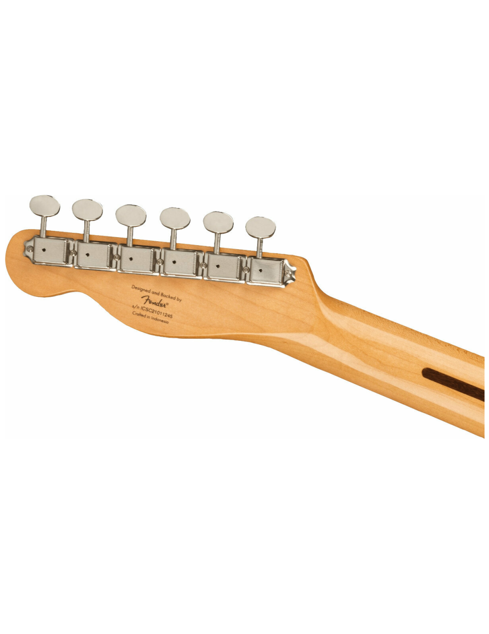 - Braço: O braço é feito de bordo, com um perfil em “C” confortável e delgado. O acabamento do braço é em uretano brilhante tingido.