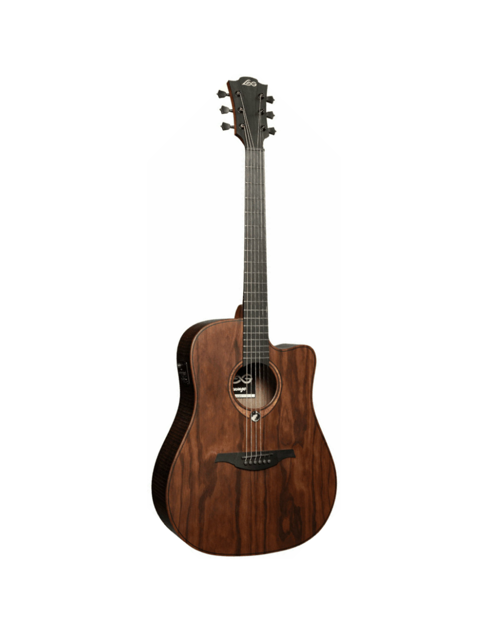 Guitarra Lâg Sauvage DCE, uma guitarra eletroacústica com corte dreadnought que combina design inovador e compromisso ambiental. Com um tampo em BrankoWood certificado pelo FSC e acabamento ecológico, esta guitarra oferece um som robusto e uma experiência de toque confortável. O sistema de pré-amplificação StageLâg proporciona controle preciso e uma acústica vibrante. Ideal para músicos exigentes que valorizam qualidade e sustentabilidade.