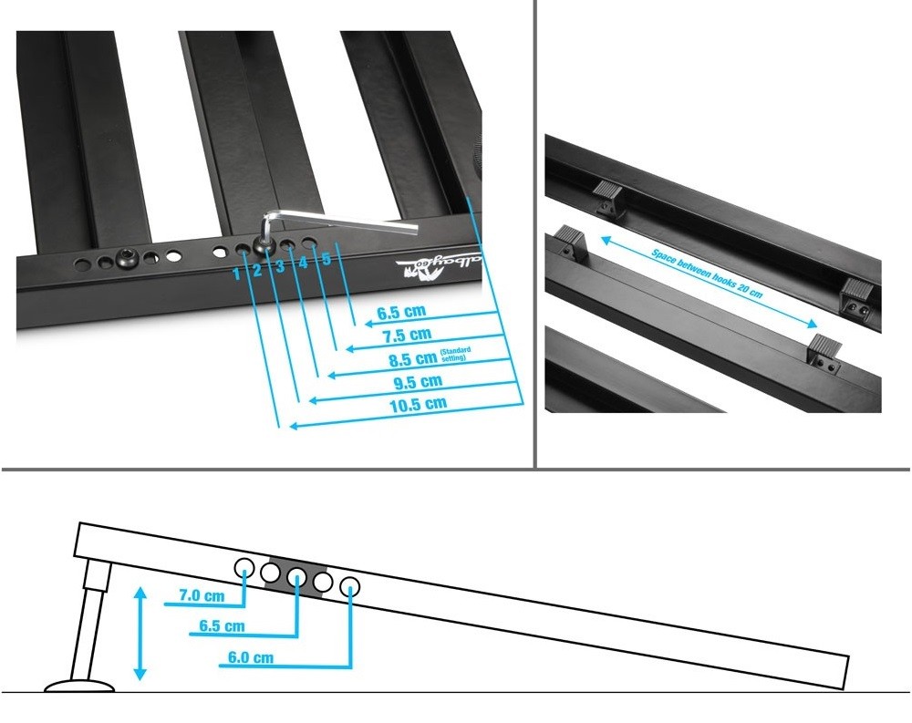 • Placa de Pedal Ajustável com estojo de transporte suave com tiracolo de ombro.