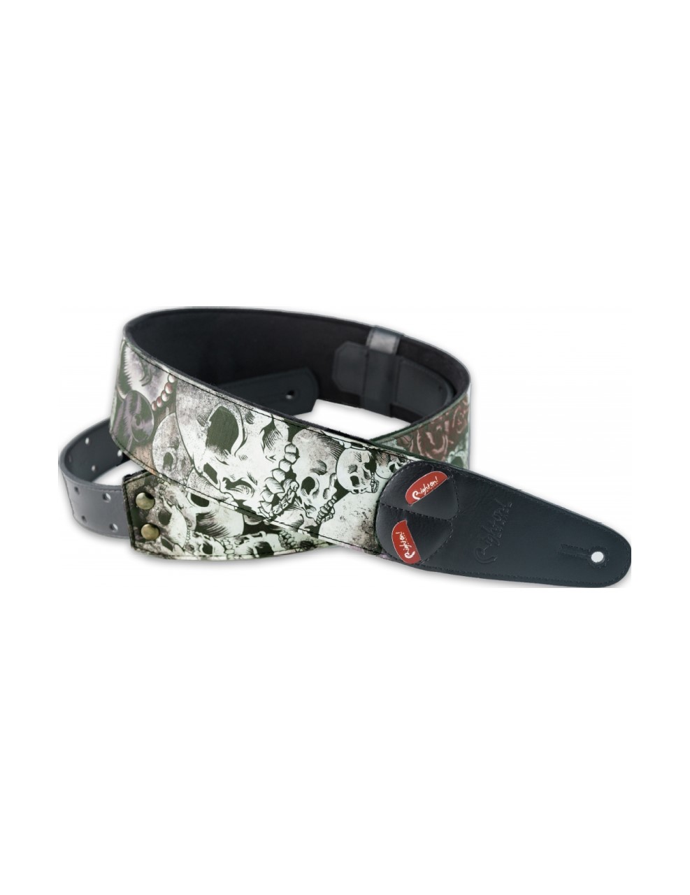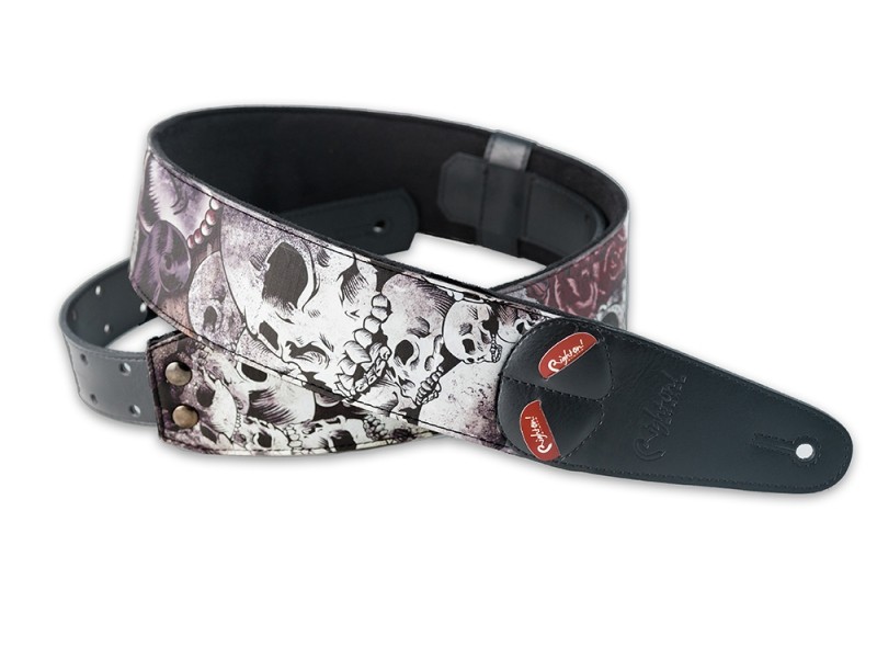 Pick Holder located in the tail of the strap. They are 3 simple cuts to introduce the plectrums, allowing faster and more intuitive access to them.