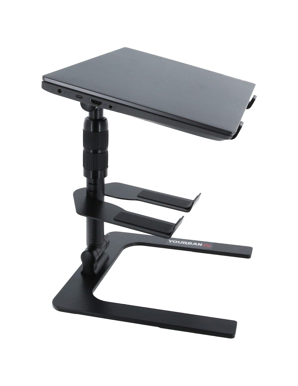 URB DJ Stand, um suporte essencial para todos os DJs móveis que exigem um produto robusto e fácil de instalar. Feito de alumínio, este suporte para laptop é leve e portátil, tornando-o perfeito para DJs em movimento. O URB DJ Stand acomoda dispositivos de 13″ a 18″, bem como controladores de DJ ou outras máquinas de tamanhos semelhantes. Ele se dobra em segundos em um formato compacto para facilitar o transporte. Para uma ergonomia ideal, a bandeja intermediária pode ser removida e ajustada em altura para otimizar seu uso. Equipado com borracha antiderrapante, o URB DJ Stand oferece máxima estabilidade e proteção para seus dispositivos. Este suporte para laptop e tablet tem uma altura ajustável entre 45cm e 30cm e suporta até 5 kg. Ele também inclui um saco de transporte para sua conveniência.